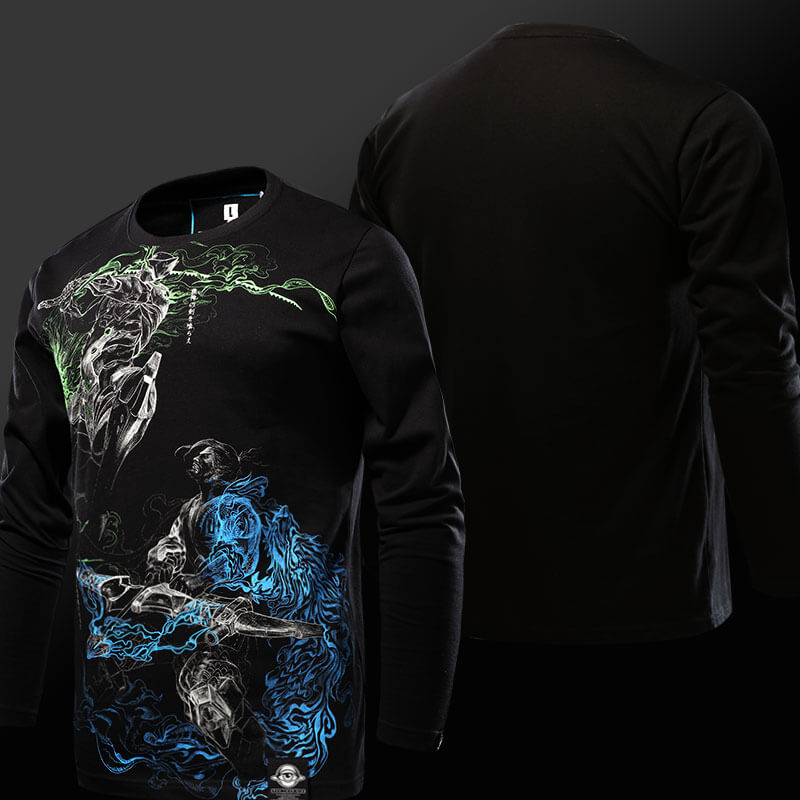 Luminous Overwatch Genji VS Hanzo Tshirt Czarny długi rękaw koszulka męska - Fan Gallery